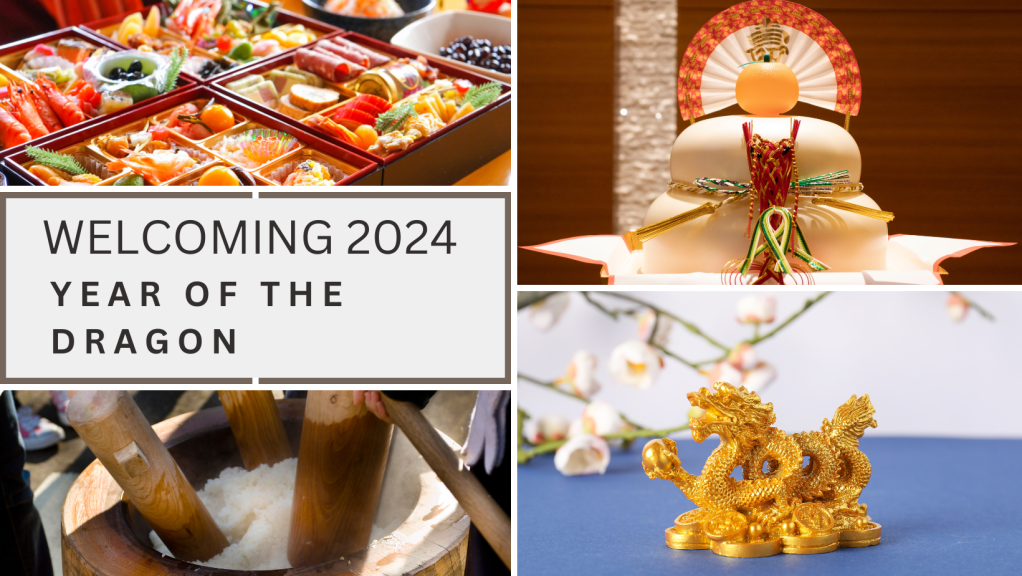 The Christmas festivities have ended and we are approaching the Year of the Dragon 2024. Do you know about the Chinese Zodiac year? It’s a 12-year circle represented by 12 animals from rat to pig. Japan also follows this culture and New Year, shougatsu in Japanese, or very commonly called oshougatsu(お正月)is a serious business! People are busy with the traditions and various preparation in welcoming the big day (here is an article that provides a detailed description of the culture.”). In Japan, around the end of the year, you can find New Year’s greeting cards called nengajou (年賀状)and other items related to New Year’s festivities being sold in post offices, supermarkets, or many other stores according to the zodiac of the respective year. New Year’s decorations are everywhere and needless to say, we are surrounded by dragons wherever we go these days!