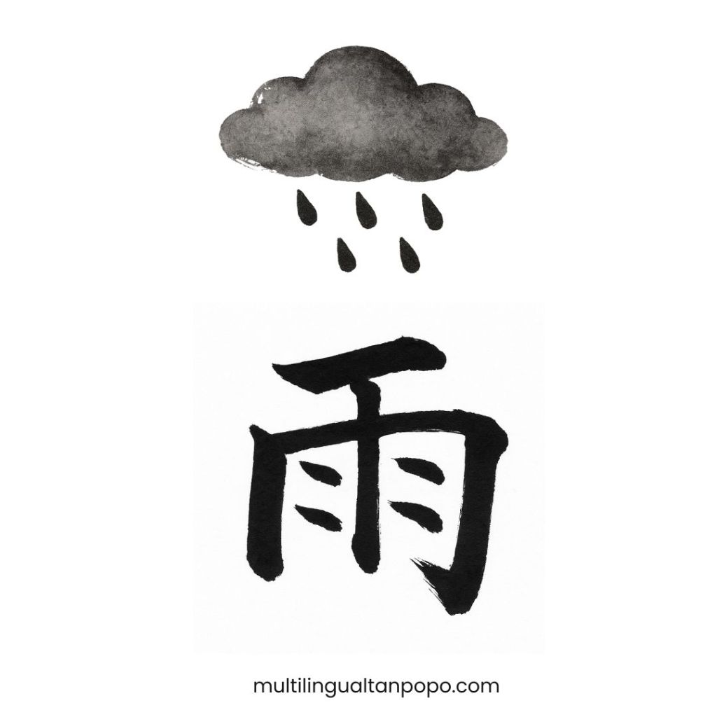 Jika kita membayangkan air yang menetes dari awan, 雨 ini terasa lebih mudah dipahami, bukan?