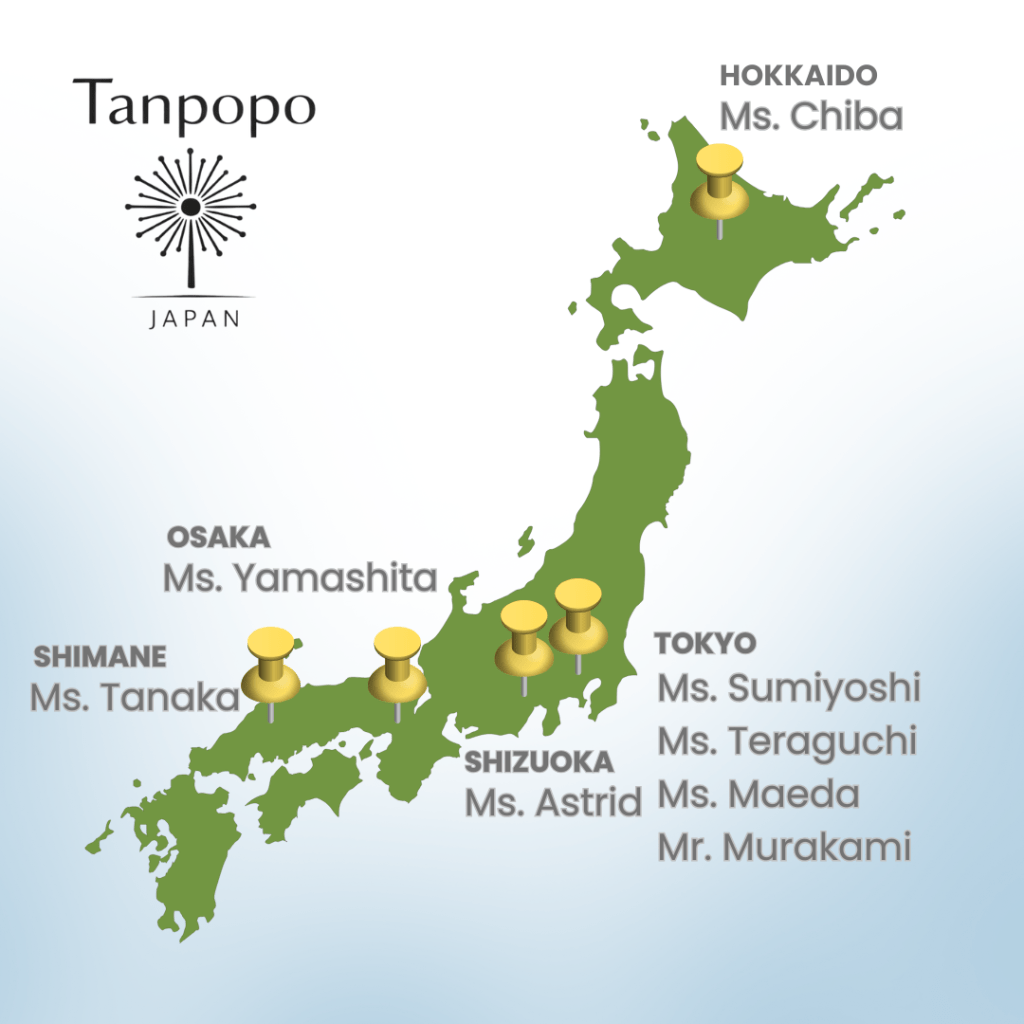 All Tanpopo tutors are based in Japan, with one tutor in Hokkaido and seven in Honshu. Except for Astrid, all are native Japanese speakers, and five are experienced instructors in Japan’s Economic Partnership Agreement (EPA) Nurse and Caregiver Candidate Program, delivered through the Japan Foundation’s Japanese-Language Pre-training Program for Indonesian and Filipino nurses and care workers.