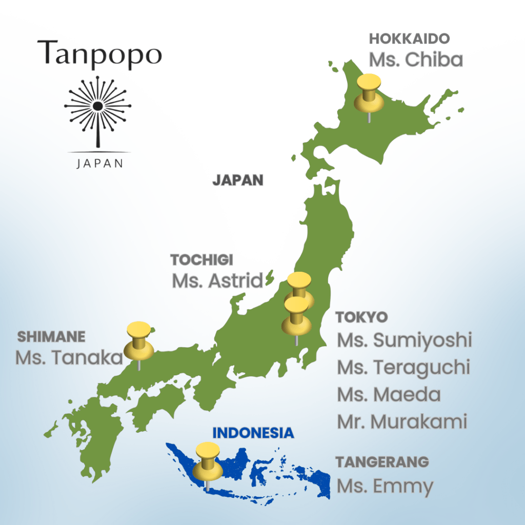 All Tanpopo tutors are based in Japan, with one tutor in Hokkaido and seven in Honshu. Except for Astrid and Ms. Emmy, all are native Japanese speakers, and five are experienced instructors in Japan’s Economic Partnership Agreement (EPA) Nurse and Caregiver Candidate Program, delivered through the Japan Foundation’s Japanese-Language Pre-training Program for Indonesian and Filipino nurses and care workers.